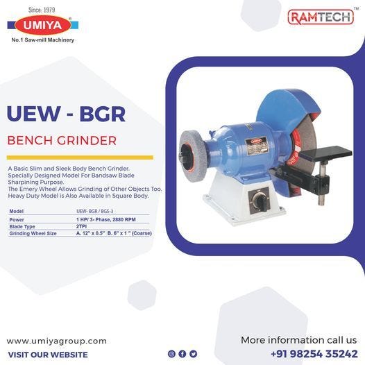 Umiya is among the top manufacturers & suppliers of Bench Grinder (model UEW—BGR) in Ahmedabad. They provide industrial-grade bench grinders with a reputation for robust design